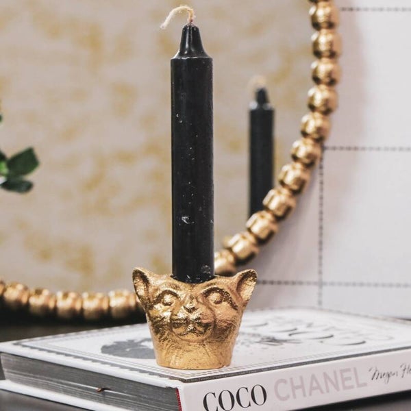 Deze gouden kat kandelaar gemaakt van aluminium houdt jou elke dag gezelschap. Zet er een mooie kaars uit onze shop in en het staat top!Materiaal: aluminiumAfmeting: 6x5x4,5 cm